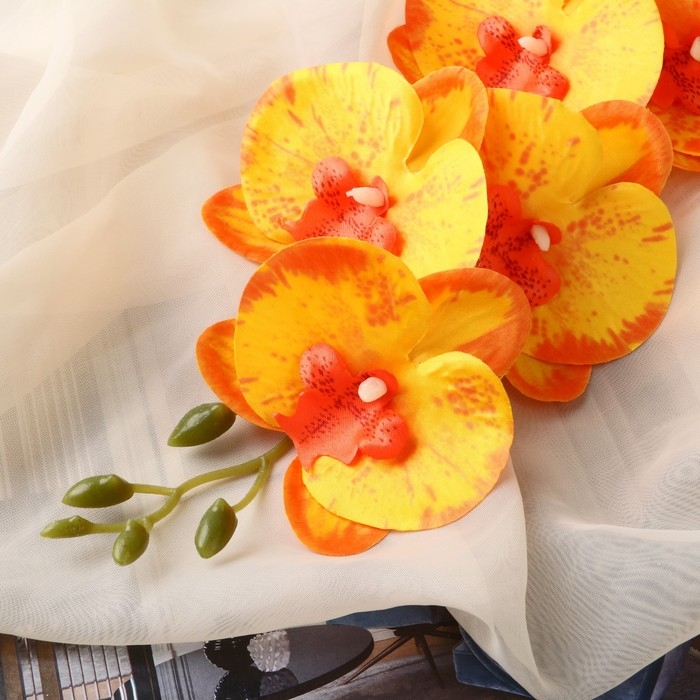 Цветы искусственные "Орхидея фаленопсис" премиум, 7х55 см, жёлтый
