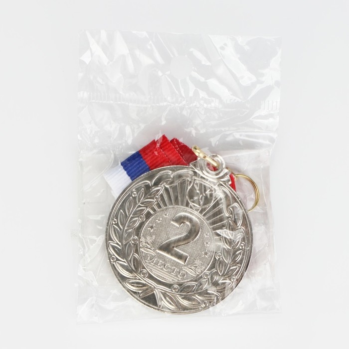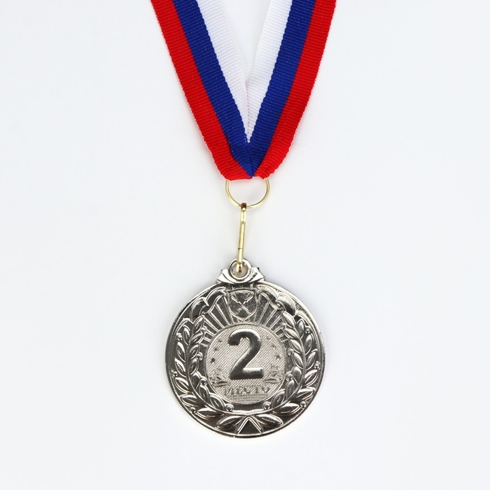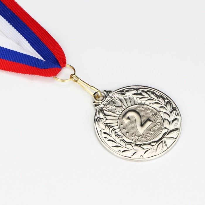 Медаль призовая 013, d= 5 см. 2 место, триколор. Цвет серебро. С лентой