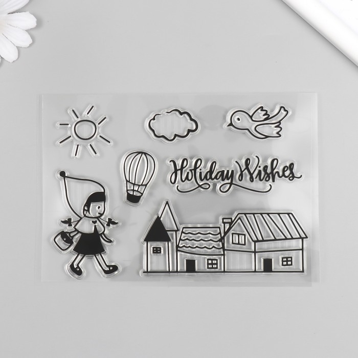 Штамп для творчества силикон "Девочка с корзинкой" 16х11 см