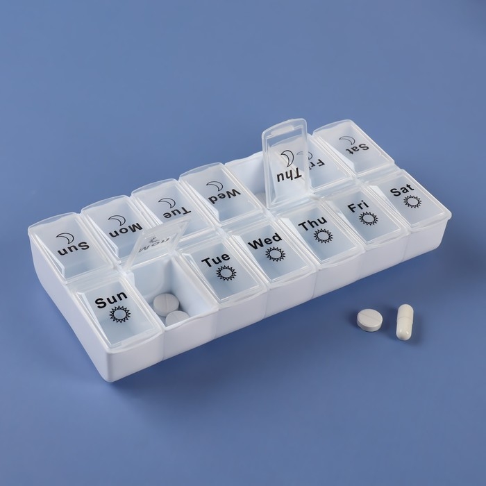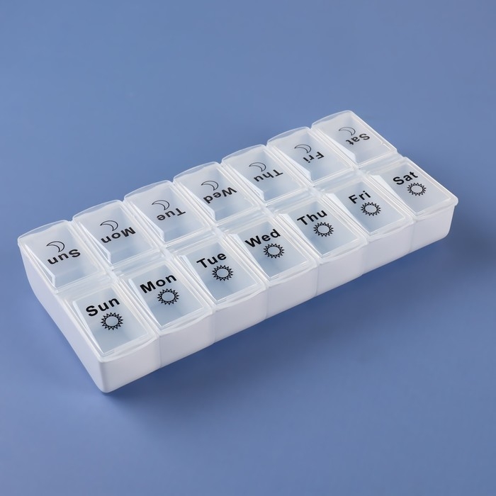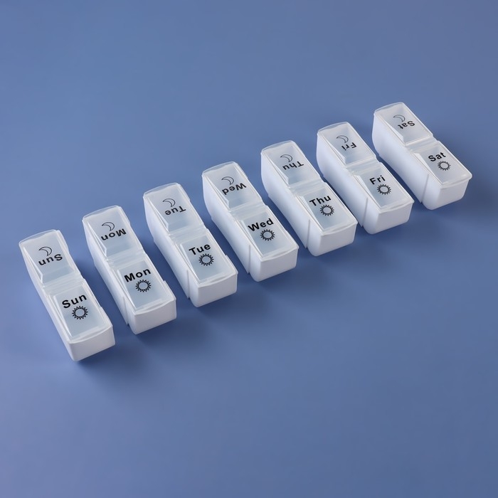 Таблетница - органайзер «Неделька», со съёмными ячейками, утро/вечер, 18,8 × 9 × 3 см, 7 контейнеров по 2 ячейки, цвет белый