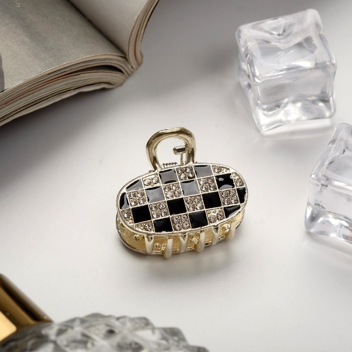 Краб для волос "Шахматка" овал, 2,5х2 см, золото