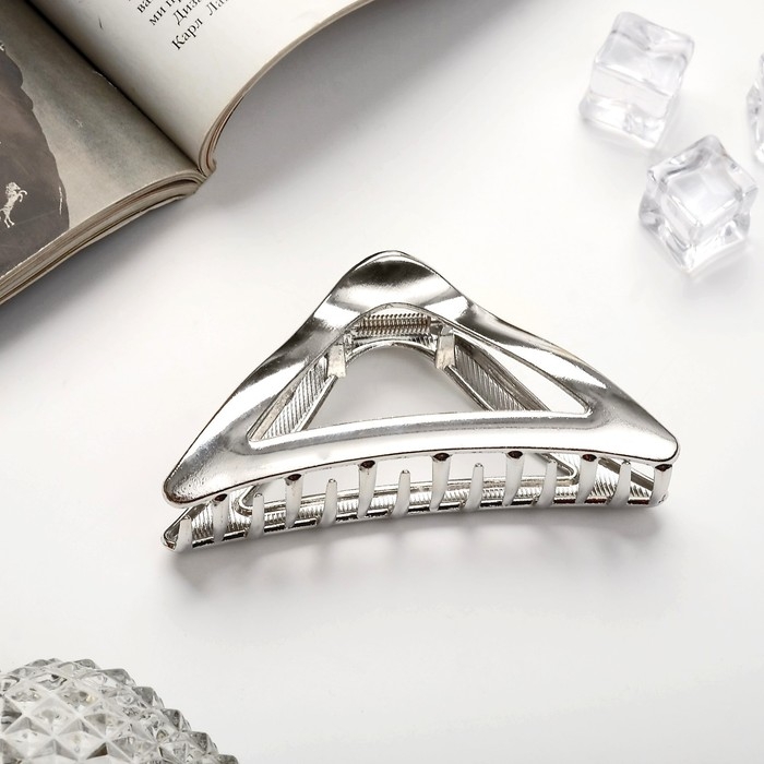 Краб для волос "Глянец" треугольник, 10х4,5 см, серебро