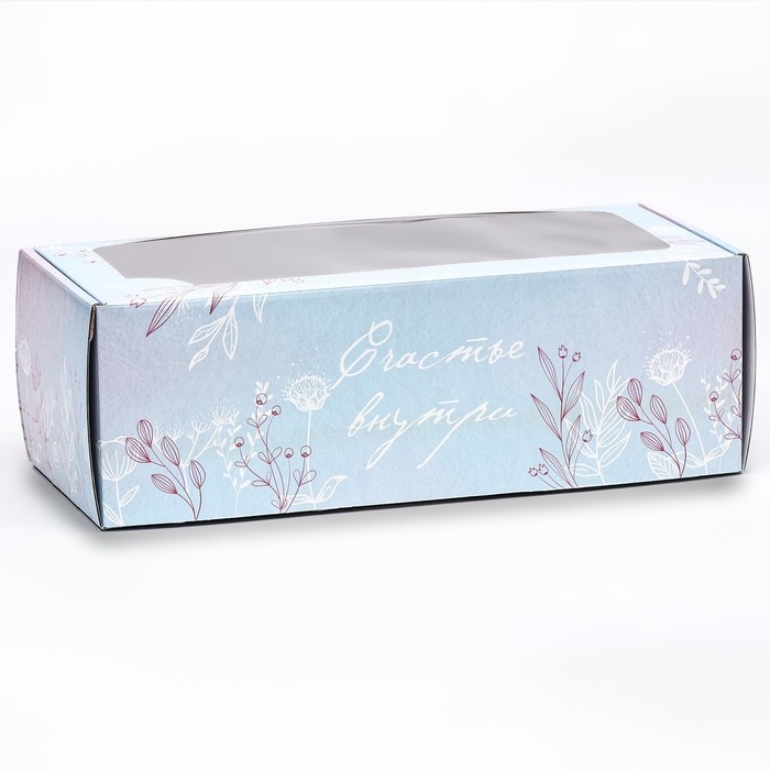Коробка складная, крышка-дно, "Цветочки", 24 х 17 х 8 см с окном
