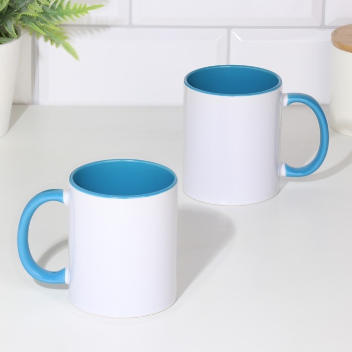 Кружка под сублимацию, керамическая с логотипом, цвет белый, объем 320 мл, дно голубого цвета 956269