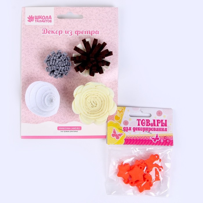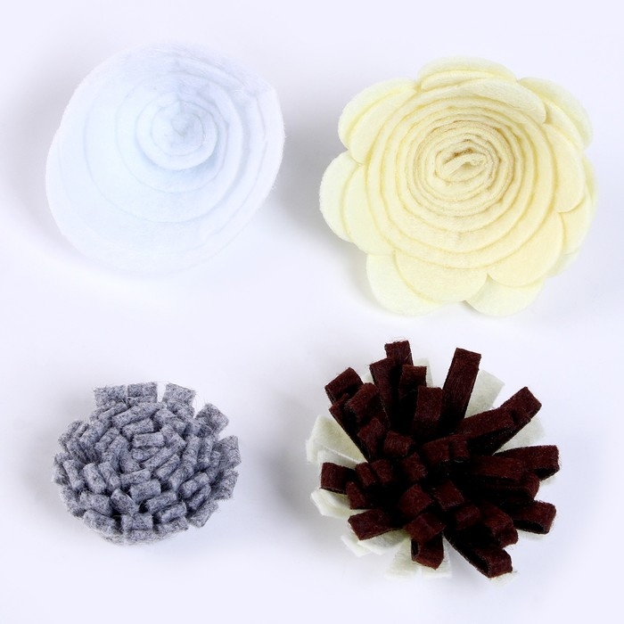 Набор из фетровых цветов с пластиковыми бусинами — это фигурный декор, который можно применить в различных сферах творчества.
