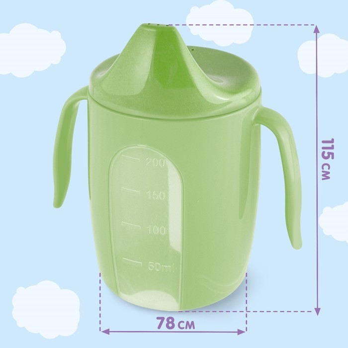 Поильник детский с твёрдым носиком «Мишутка. Мамы и малыши», 150 мл., с ручками, цвет зеленый