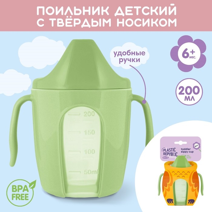 Поильник детский с твёрдым носиком «Follow Me», 200 мл., с ручками, цвет зеленый