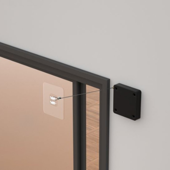 Доводчик дверной ТУНДРА, до 20 кг, цвет черный, натяжение 1200 гр, длина троса 100 см