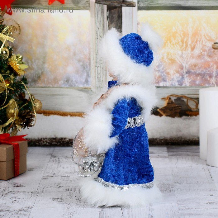 Снегурочка "Шик" в синей шубке с серёжками, двигается, 29 см