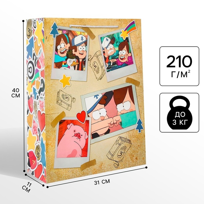 Пакет подарочный, 31х40х11.5 см, упаковка, Гравити Фолз