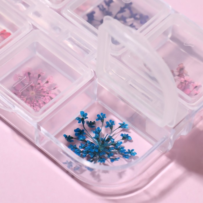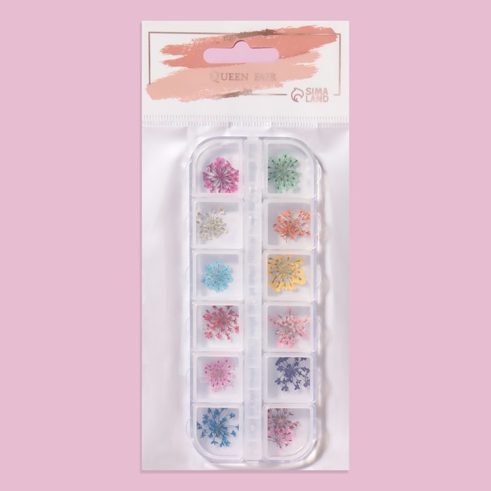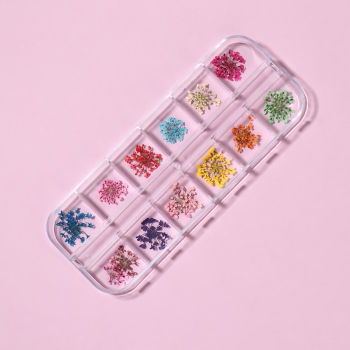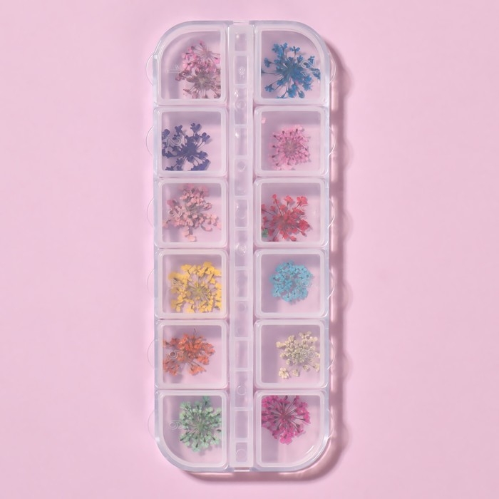 Сухоцветы для декора ногтей, 12 видов, в футляре, цвет разноцветный