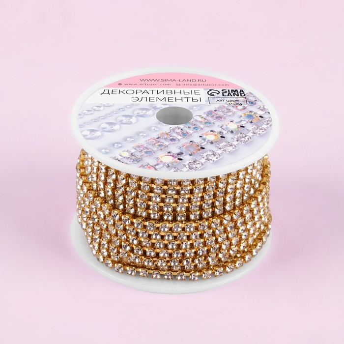 Цепь со стразами, металл, стекло, 2,5 мм, 9 ± 1 м, цвет золотой