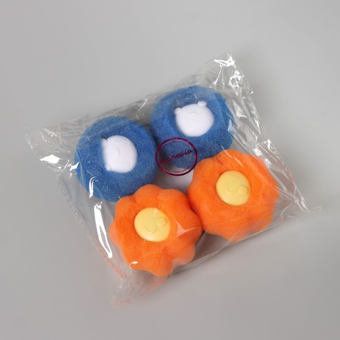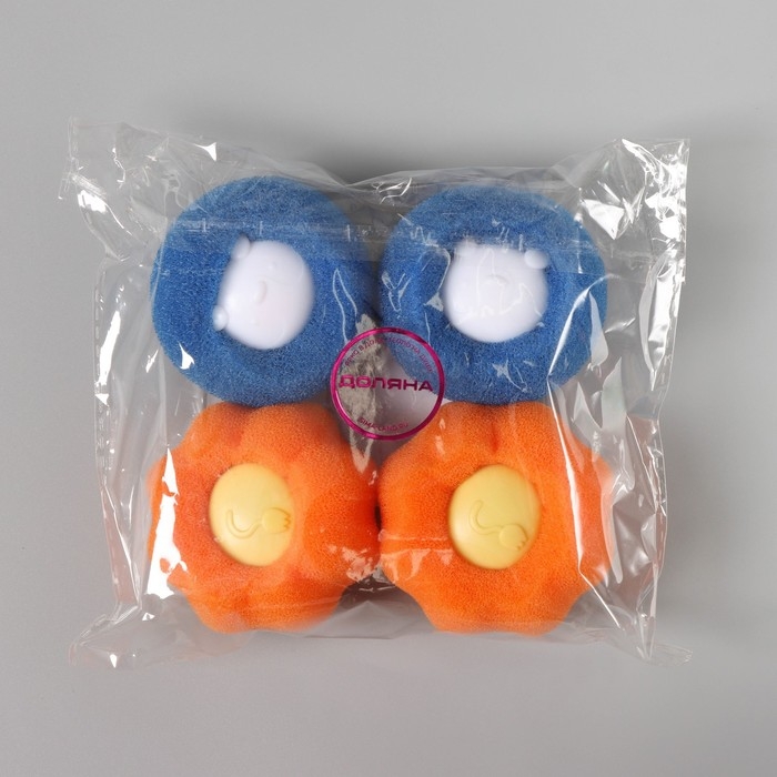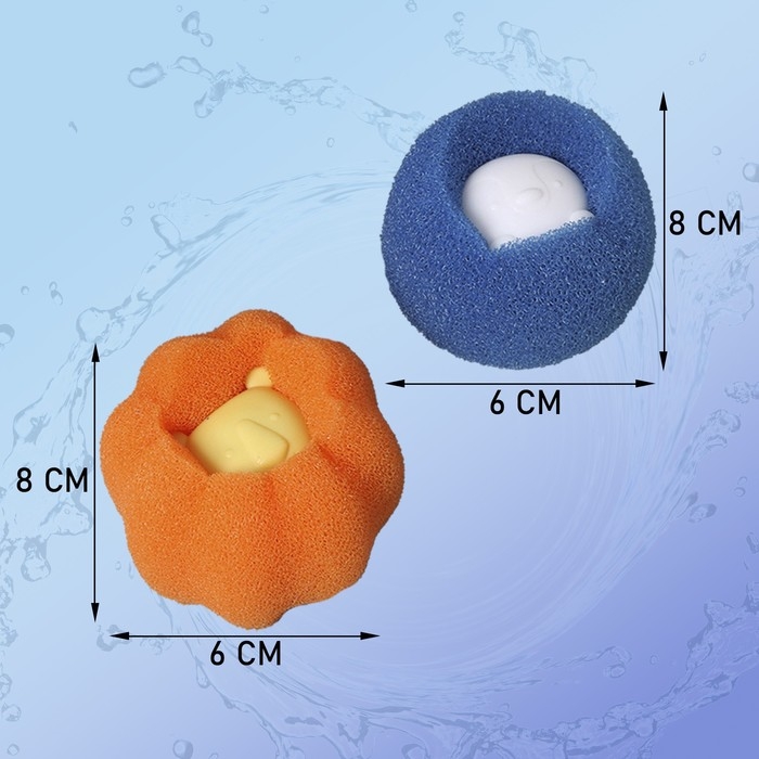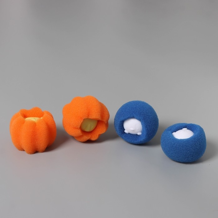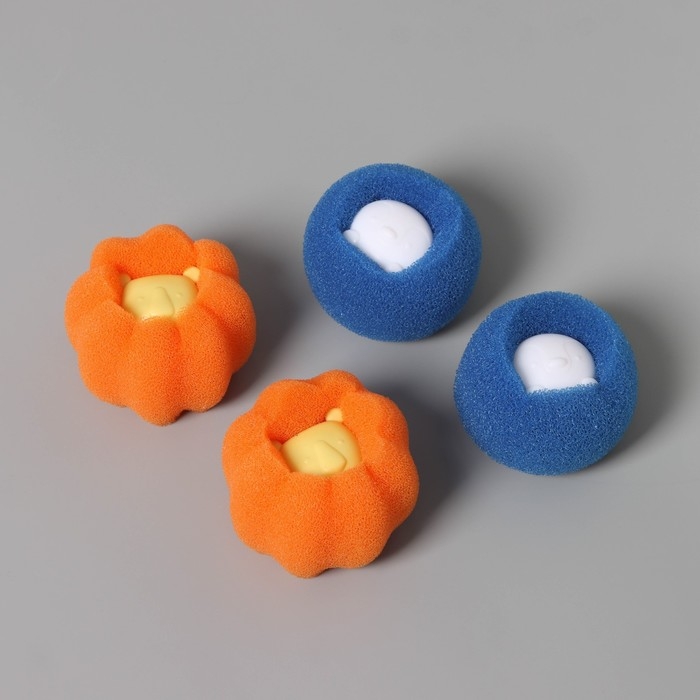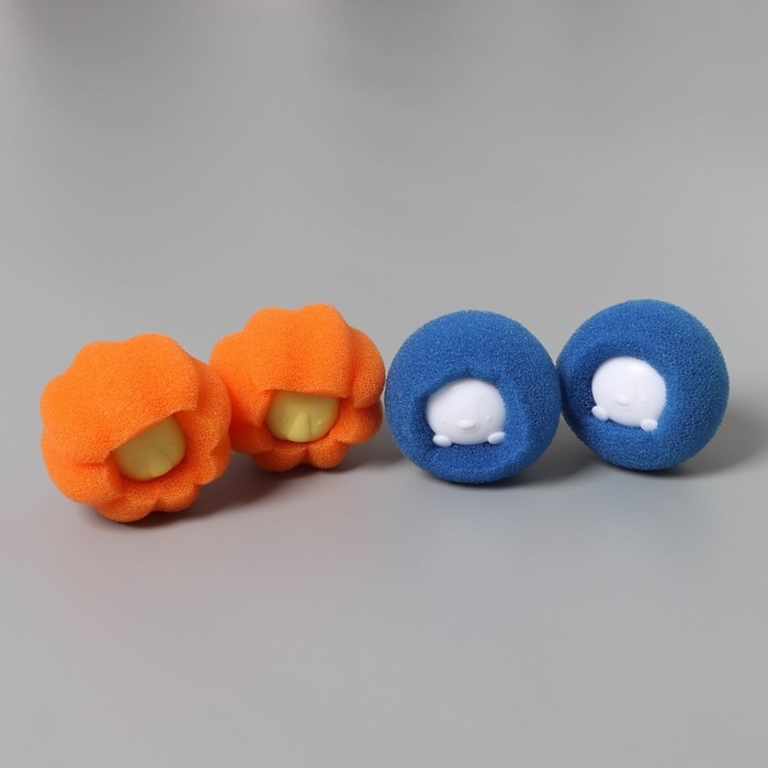 Шарики для стирки Доляна, набор 4 шт, d=8 см, цвет синий/оранжевый