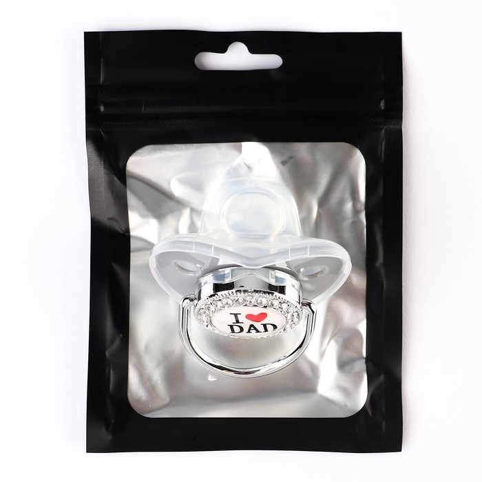 Соска - пустышка силиконовая ортодонтическая «I LOVE DAD», от 6 мес., с колпачком, цвет серый/серебро, стразы