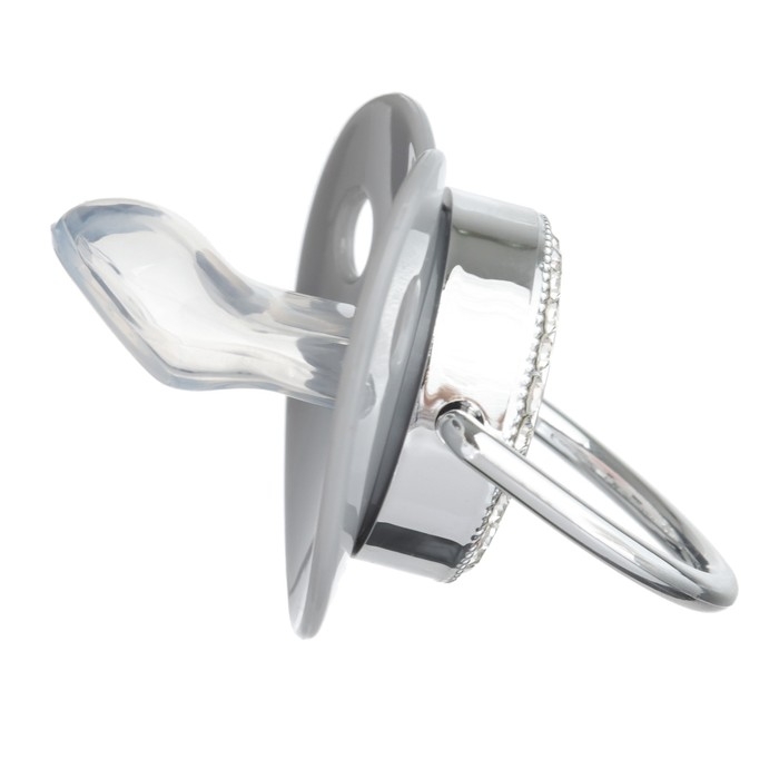 Роскошная пустышка со стразами и держателем для соски. Соска со стразами ортодонтической формы скошенная. Современный и модный дизайн пустышки со стразами не оставит равнодушным никого из взрослых и детей. Очень стильная и модная детская соска с инициалами повторяет форму соска материнской груди во время кормления. Даже детки с зубами могут пользоваться ей, ведь она очень плотная.