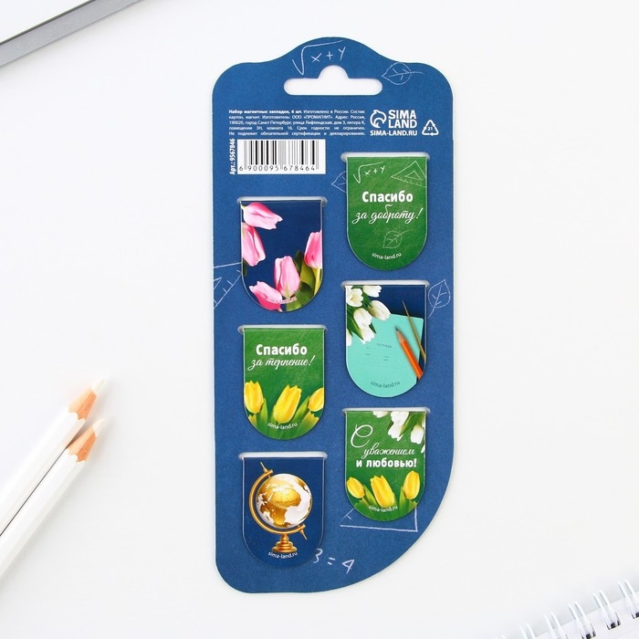 Закладки магнитные на подложке «Любимому учителю», 6 шт.