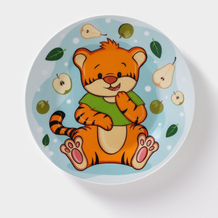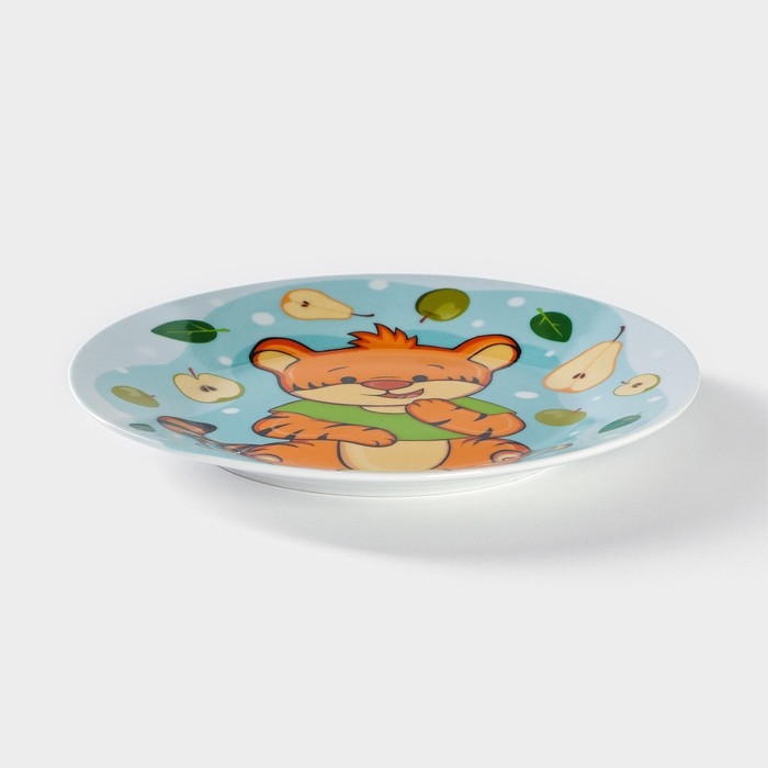 Тарелка керамическая Доляна «Тигрёнок с грушами», d=17,5 см, цвет белый