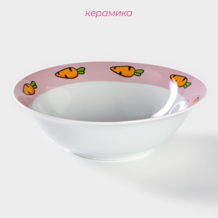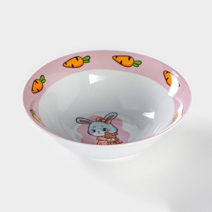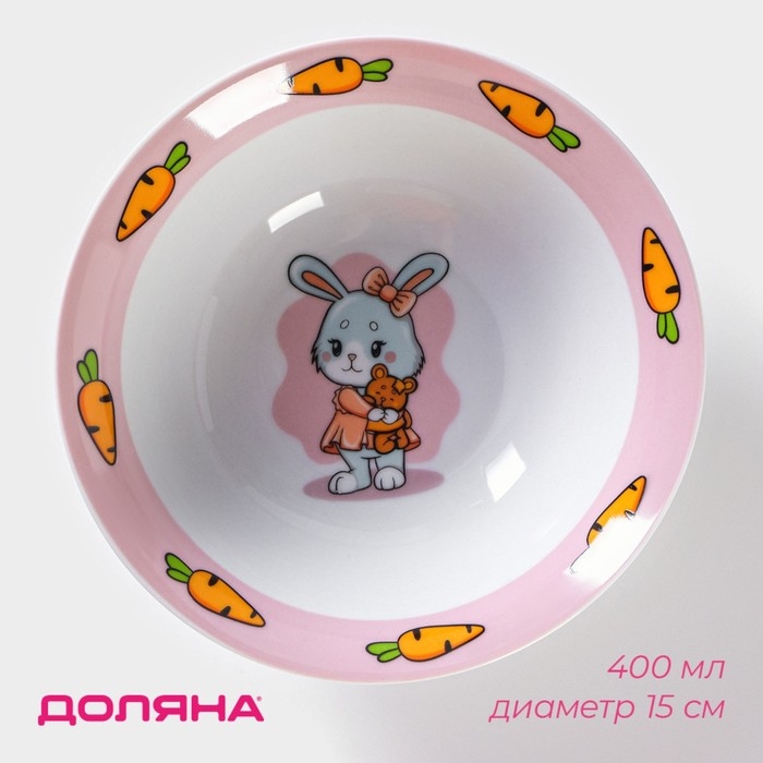 Тарелка керамическая глубокая Доляна «Лапочка зайка», 400 мл, d=15 см, цвет белый