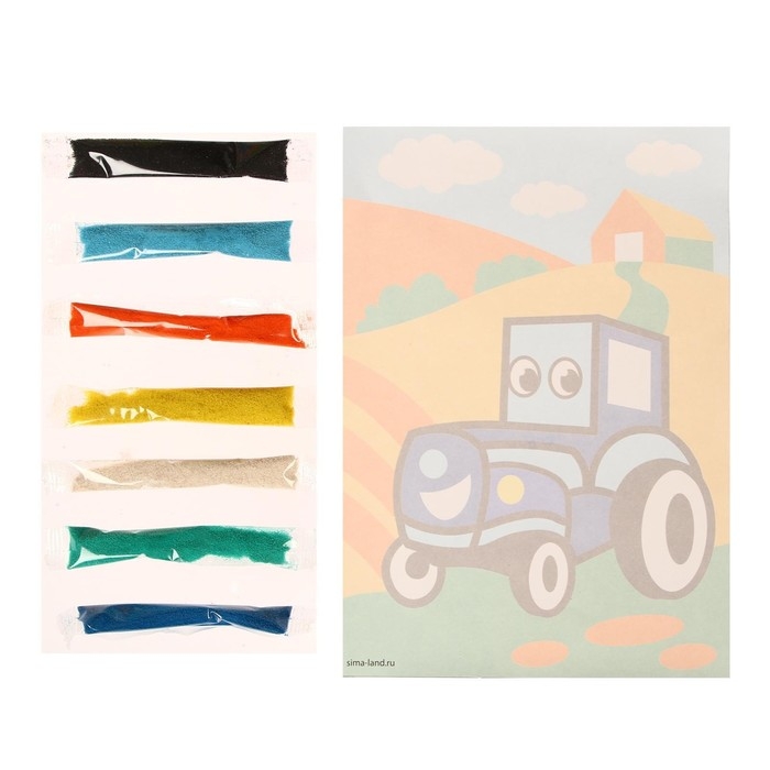 Фреска песком — увлекательный вид творчества, который понравится каждому ребёнку. Клеевая основа защищена специальным слоем бумаги, куда нанесены прорезные контуры. Каждый цвет находится в своей зоне: отделяйте верхний слой, засыпайте песком подходящего оттенка.