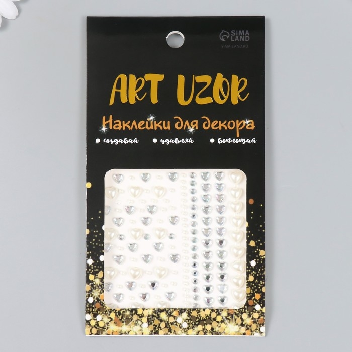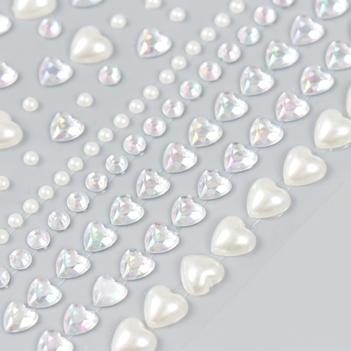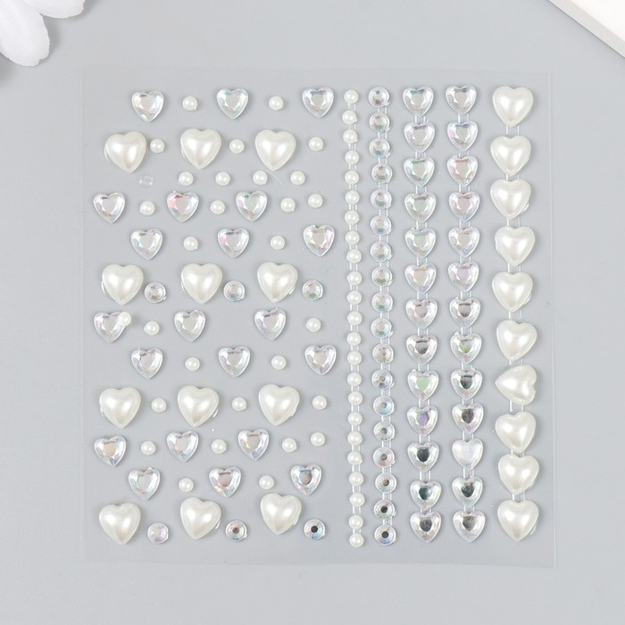 Наклейка пластик стразы, жемчужины "Сердечки, кружочки" 10,5х16 см
