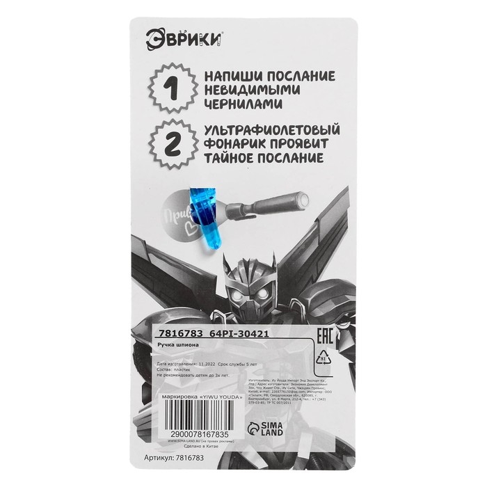 Есть обычные ручки, с которыми мы все привыкли работать. Но что если ручка могла бы делать больше, чем просто писать? Ручка с невидимыми чернилами превратит обычное письмо в захватывающую игру шпионов! Ребёнок представит себя тайным агентом, напишет секретное сообщение, которое проявляется только под ультрафиолетом.