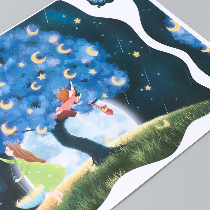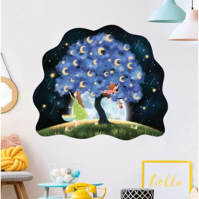 Наклейка пластик интерьерная цветная "Дерево на фоне луны" 30х45 см