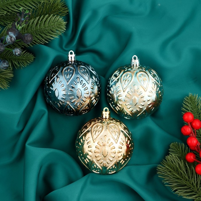 Набор шаров пластик d-8 см, 3 шт "Мадлен" капельки, микс