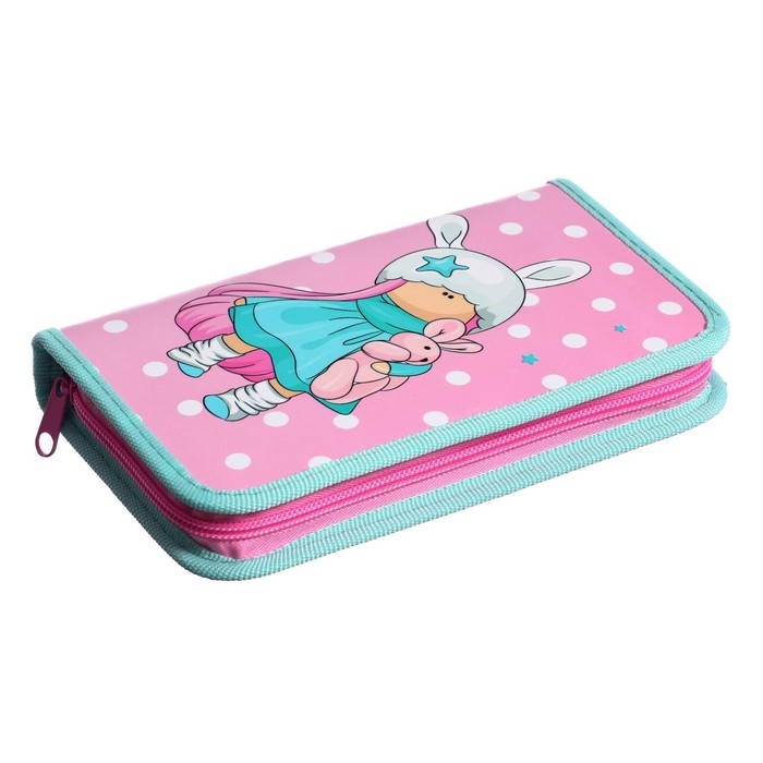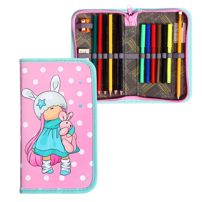 Пенал 1 секция, 115 х 205 мм, с наполнением 16 предметов, Calligrata "Девочка" ламинированный картон, 30П26/set