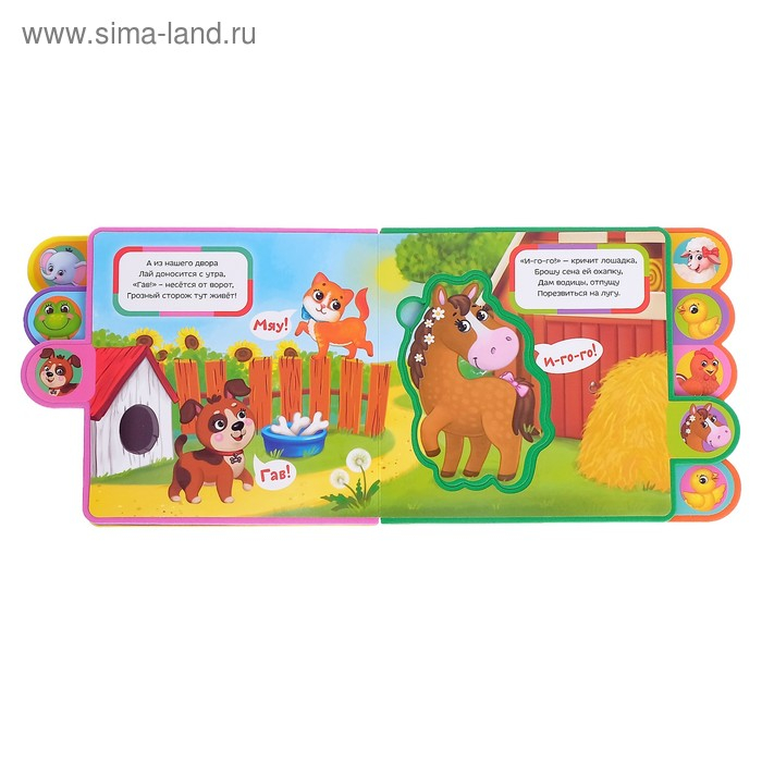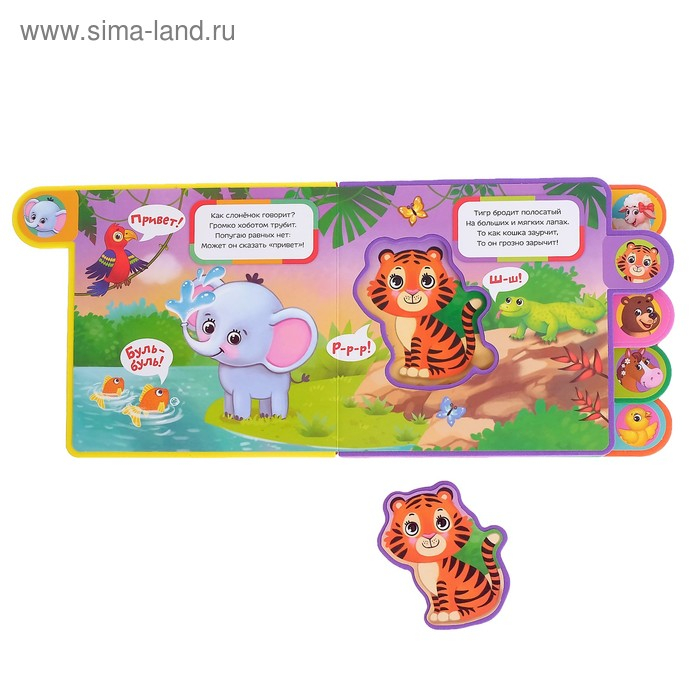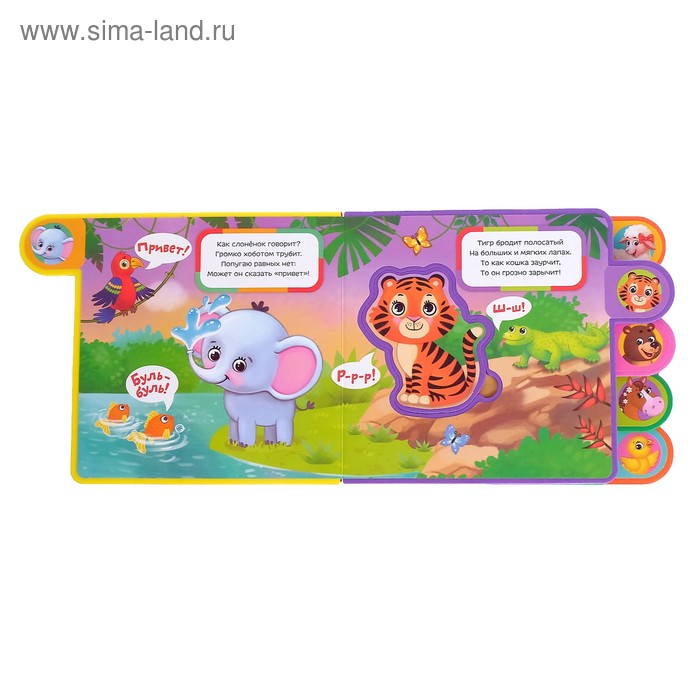 Мягкая книга сделана из приятного на ощупь пористого материала EVA. На каждой странице приклеены яркие иллюстрации с милыми зверятами, которые понравятся малышу.