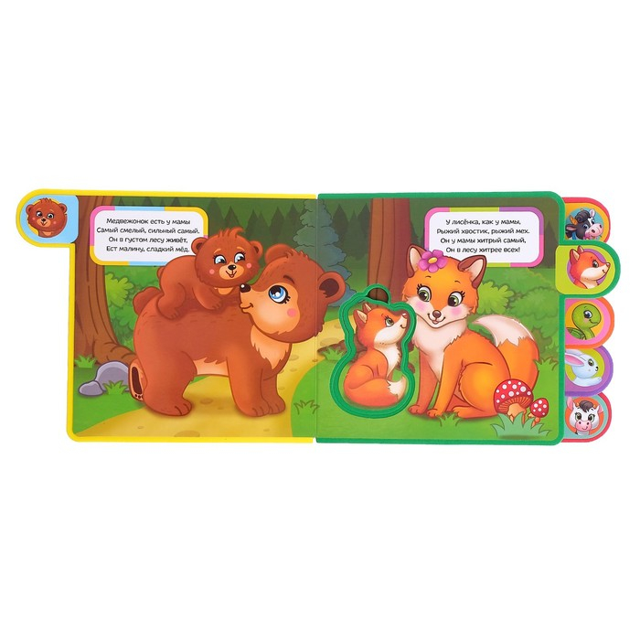 Мягкая книга сделана из приятного на ощупь пористого материала EVA. На каждой странице приклеены яркие иллюстрации с милыми зверятами, которые понравятся малышу.