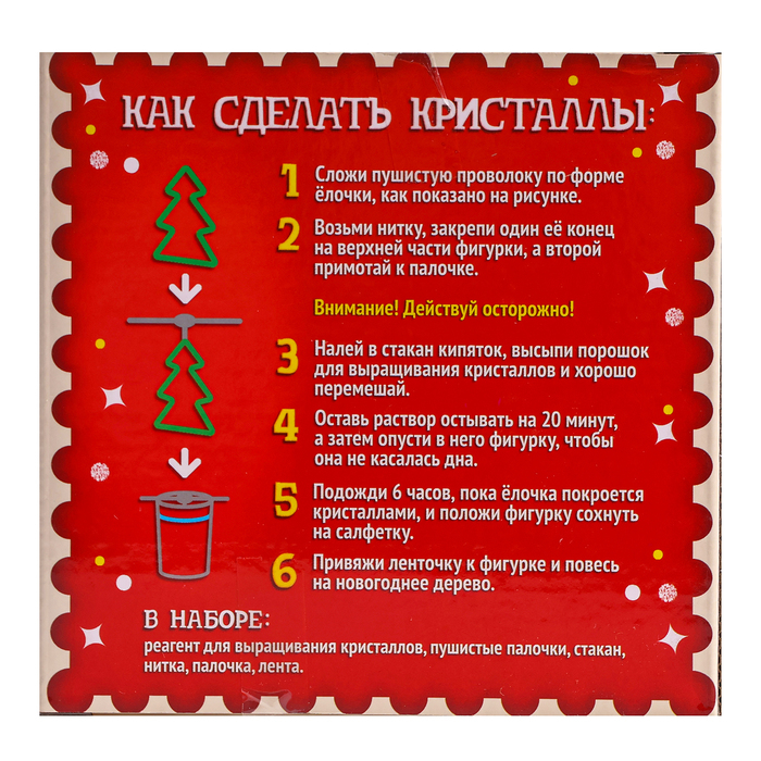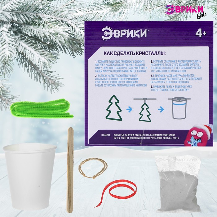 С набором «Новогодняя ёлка» ребёнок увидит, как растут кристаллы! Этот процесс не просто интересен — он завораживает, а готовый результат станет настоящим украшением детской комнаты.