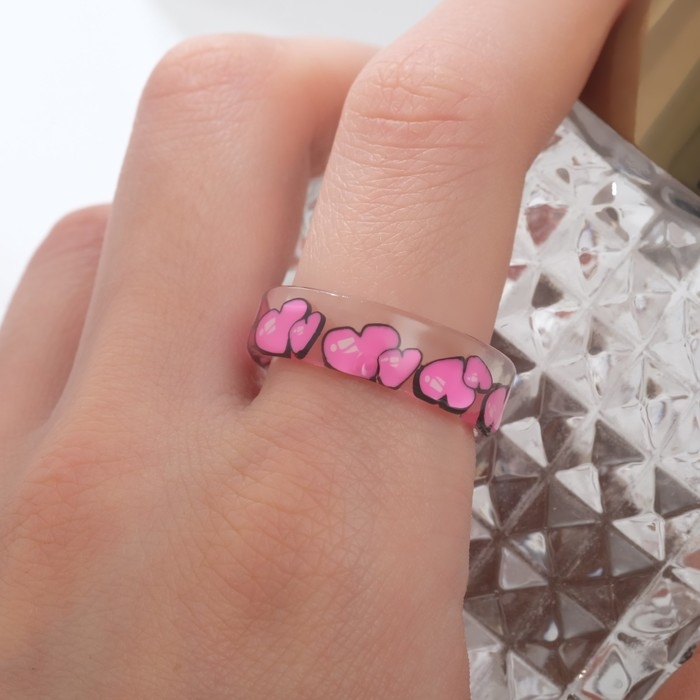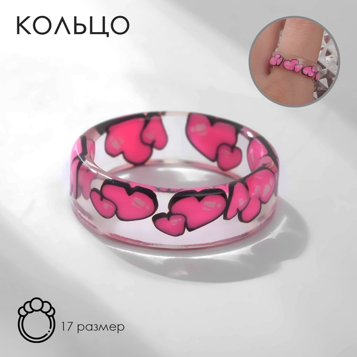 Кольцо «Прозрачное» сердца, цвет розовый, 17 размер