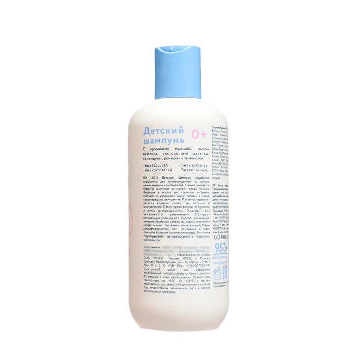 Шампунь детский LULU с протеинами пшеницы, без парабенов и силиконов – это безопасное и бережное средство для ухода за детскими волосами, разработанное с учетом всех особенностей чувствительной кожи головы и нежных волос малышей.