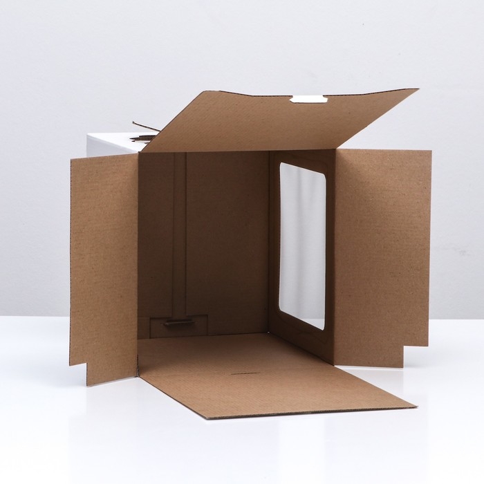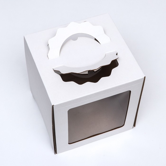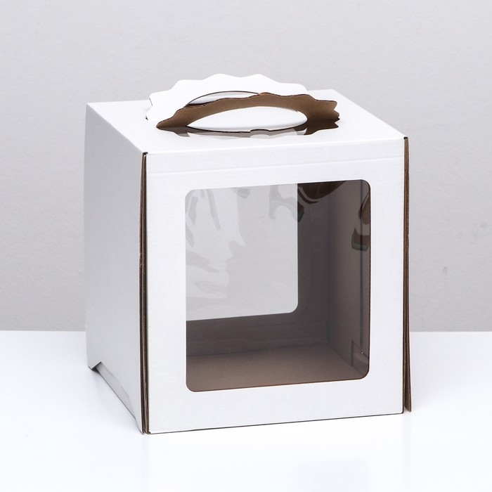 Коробка под торт, белая, с окном, 18 х 18 х 22 см