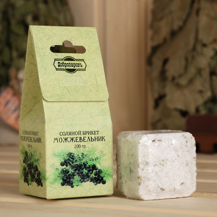 Соляной брикет куб "Можжевельник" 200 г "Добропаровъ"