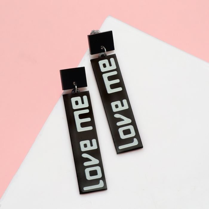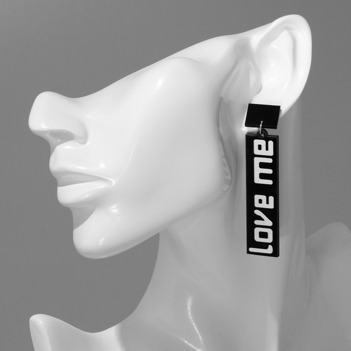 Серьги акрил LOVE ME прямоугольные, цвет чёрно-белый