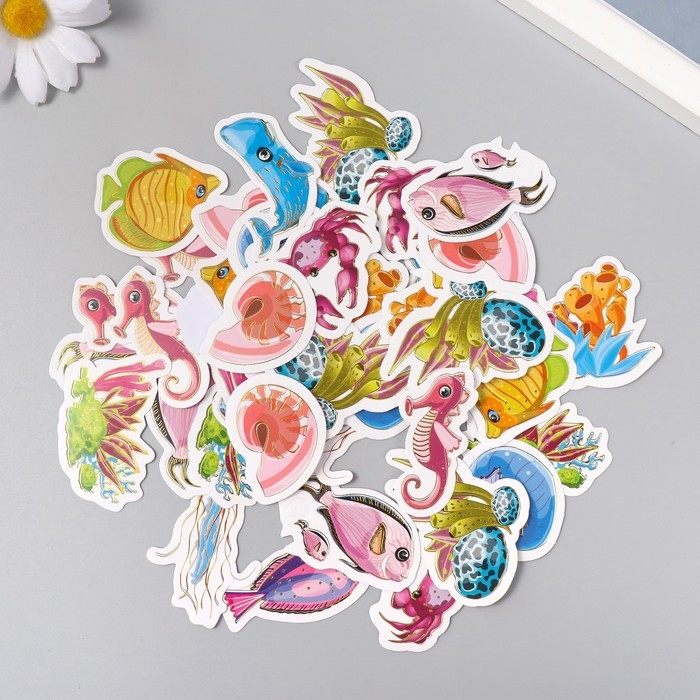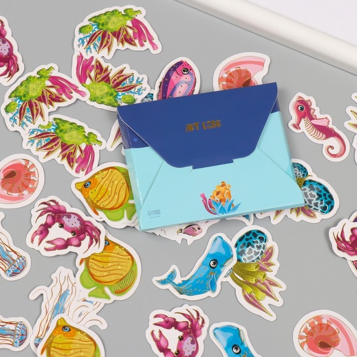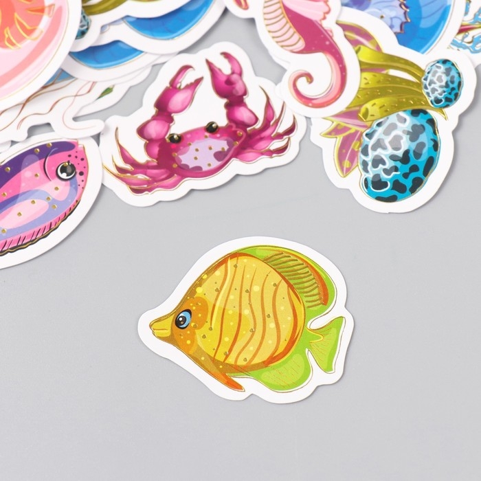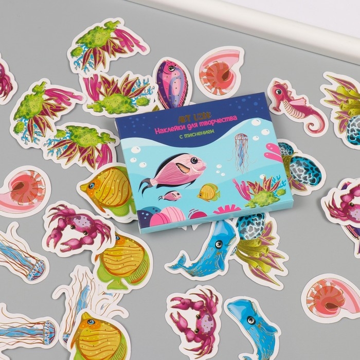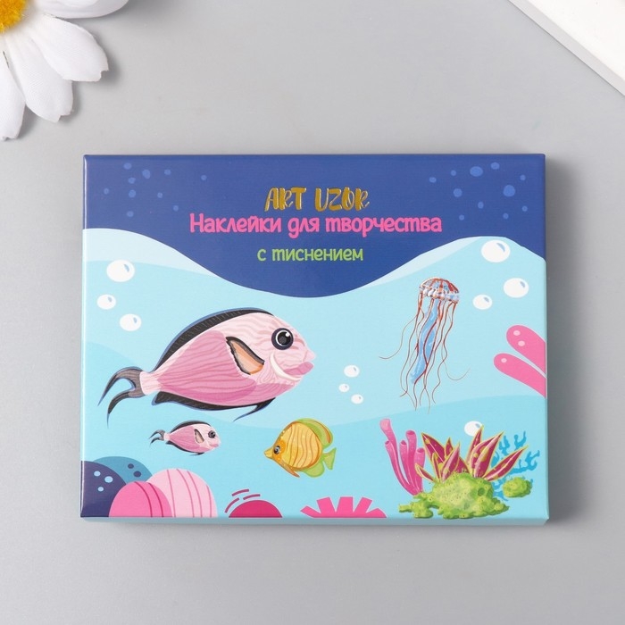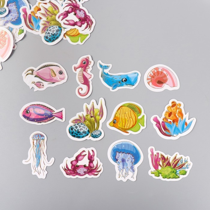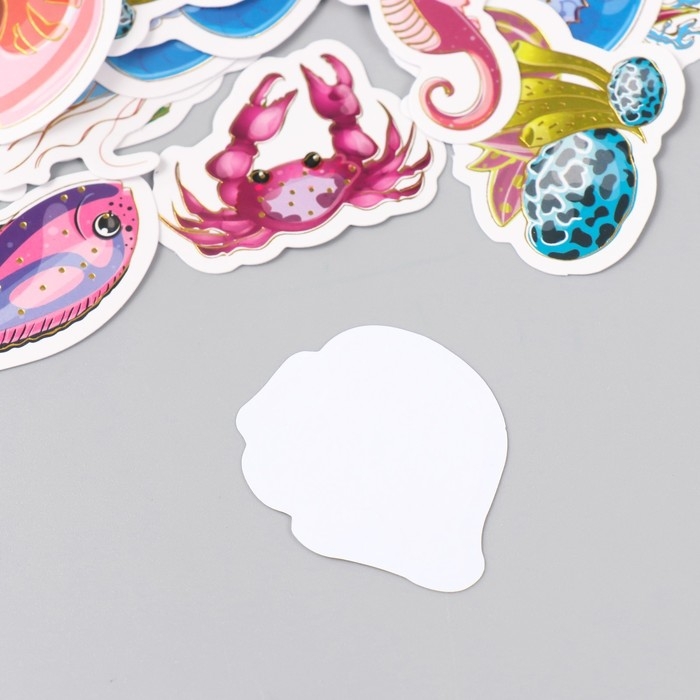 Наклейки для творчества "Подводный мир" тиснение серебро набор 48 шт 9х7х0,8 см