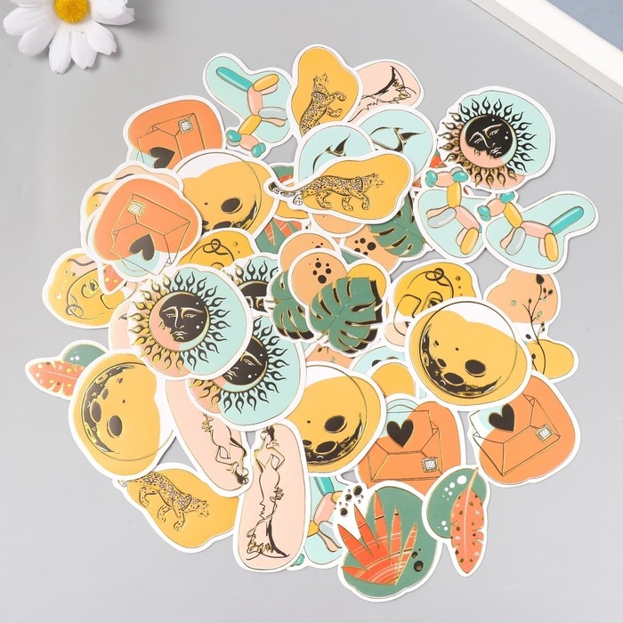 Наклейки для творчества "Абстракция" тиснение золото набор 48 шт 9х7х0,8 см