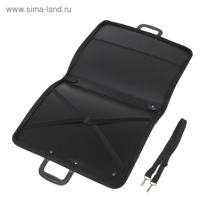 Портфель с 2 отделениями А3, Calligrata, пластиковый, с ручкой, на молнии, с лямкой, для эскизов, чёрный