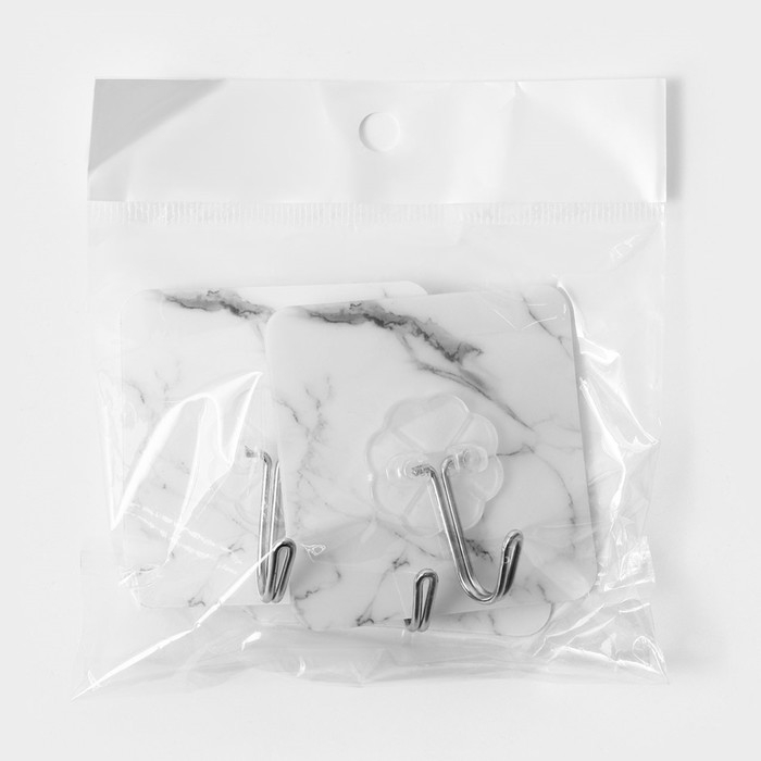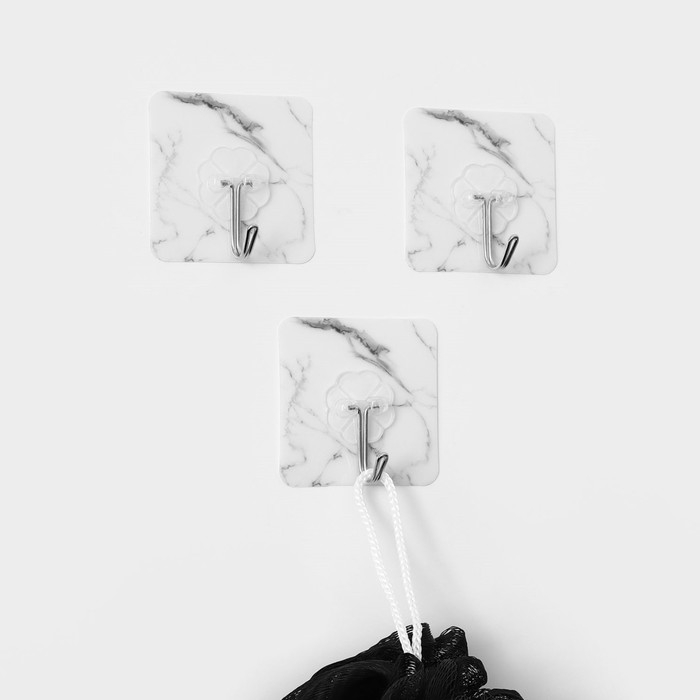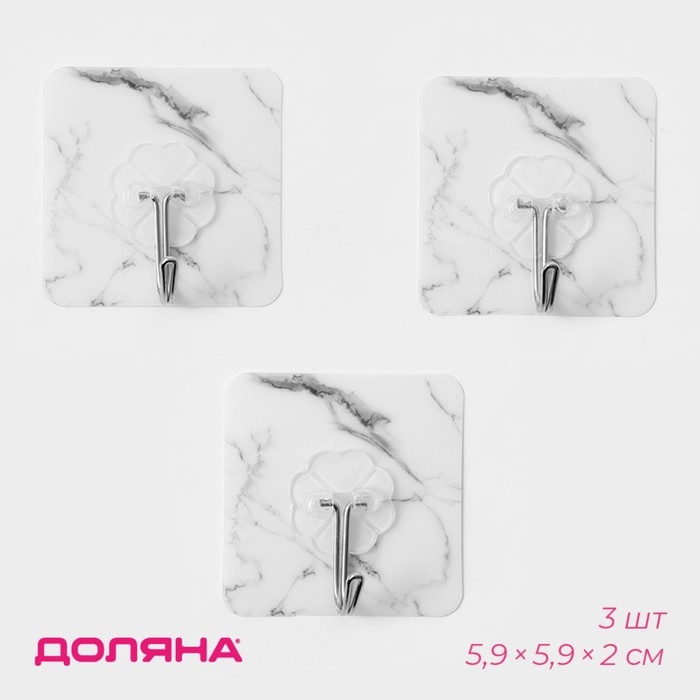 Крючки самоклеящиеся Доляна «Мрамор», 3 шт, 5,9×5,9×2 см