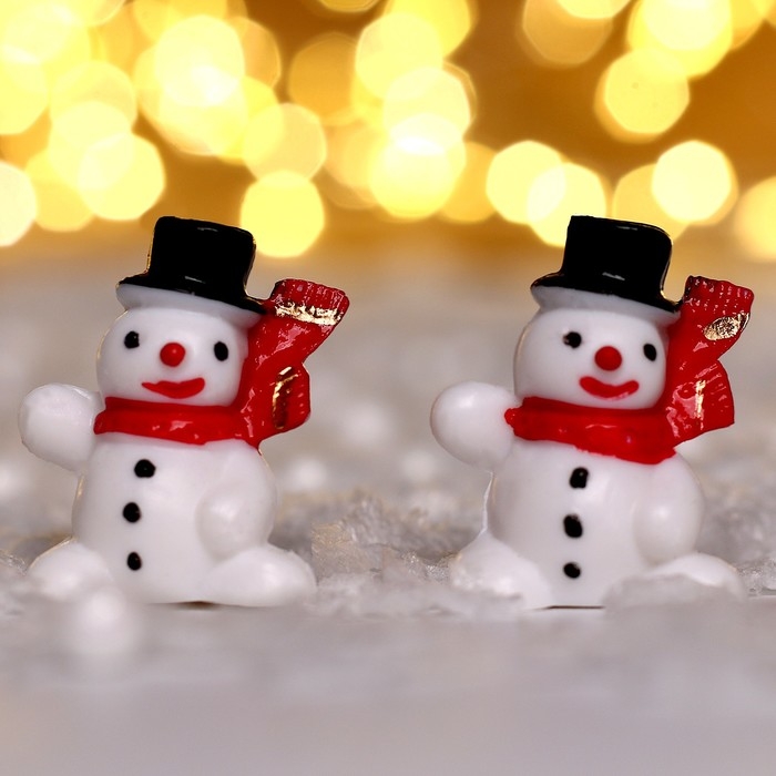 Миниатюра кукольная «Снеговик с шарфом», набор 2 шт., размер 1 шт. — 3,3 × 2,7 см