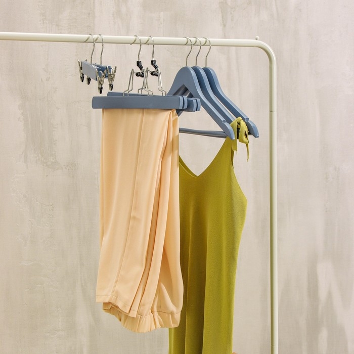 Плечики - вешалки для брюк и юбок Доляна, 45×27 см, 3 шт, с зажимами, деревянные сорт С, широкие плечики