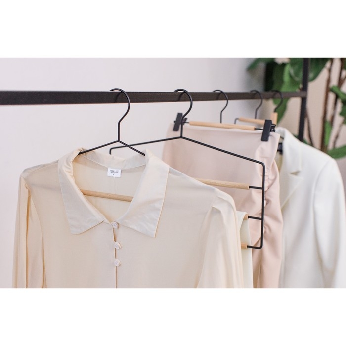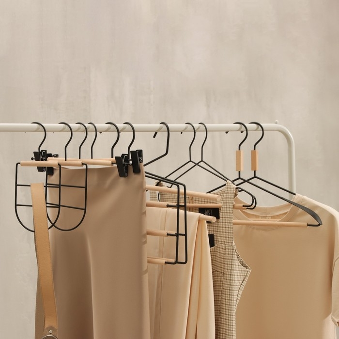 Плечики - вешалки для брюк и юбок Доляна, 45×27 см, 3 шт, с зажимами, деревянные сорт С, широкие плечики