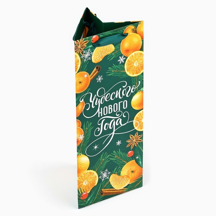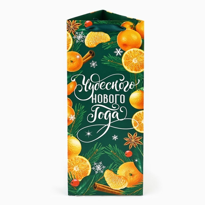 Пакет под бутылку, треугольный «Новый год», 13 х 32 х 11.3 см, Новый год