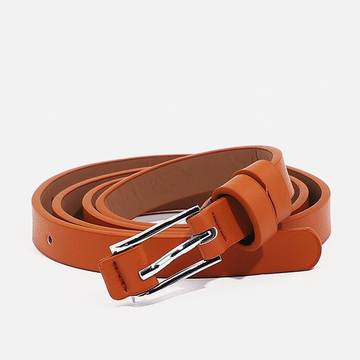 Ремень женский, ширина 1,5 см, винт, пряжка серебро, цвет оранжевый