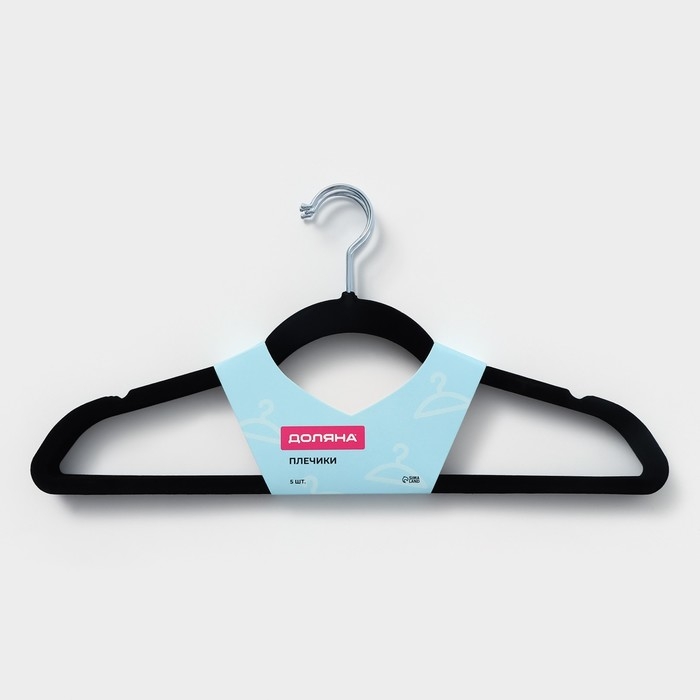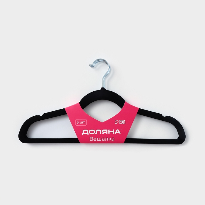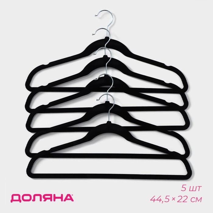 Плечики - вешалки для одежды Доляна, 44,5×22 см, 5 шт, флокированное покрытие, цвет чёрный