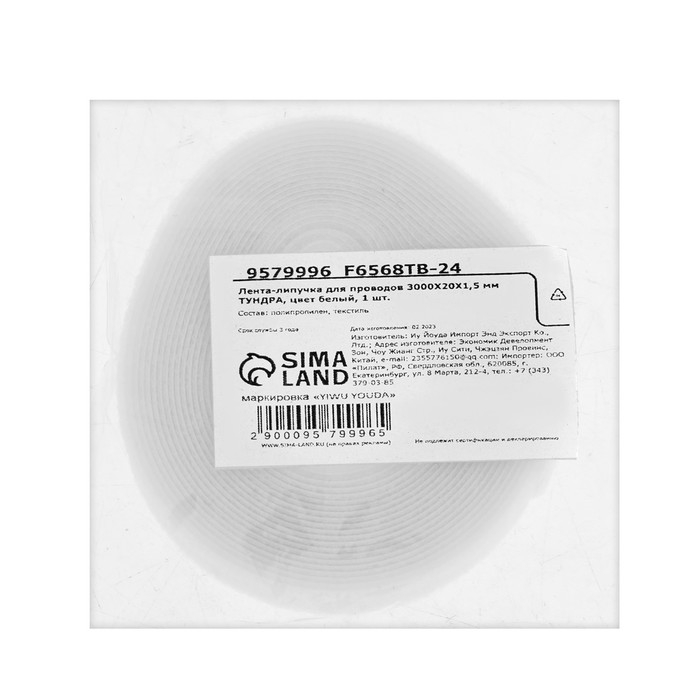 Лента-липучка для проводов 3000Х20Х1,5 мм ТУНДРА, цвет белый, 1 шт.