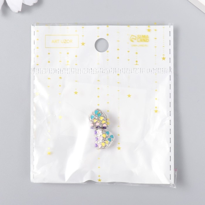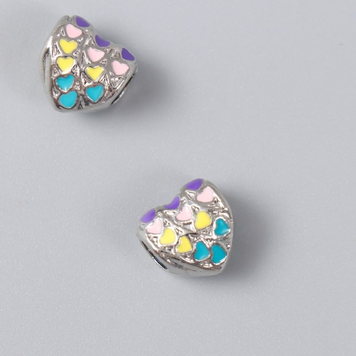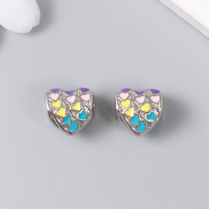 Бусина для творчества металл "Сердце с сердечками" серебро, эмаль 1.1 см