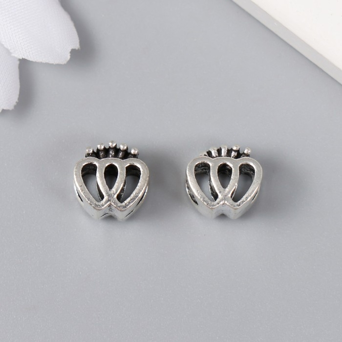 Бусина для творчества металл "Два сердца с короной" серебро 1х1 см