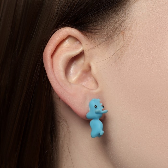 Серьги из полимерной глины «Бегемот», цвет голубой